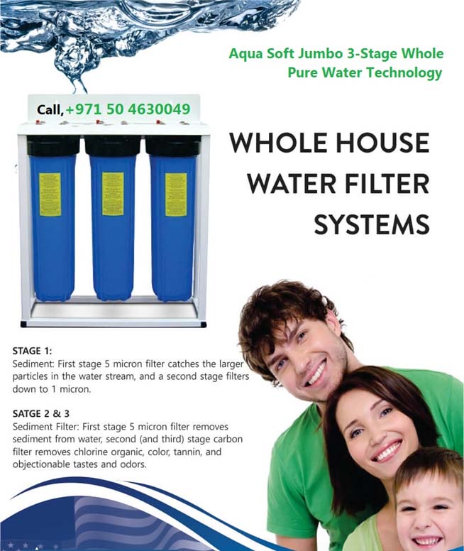 Aqua Soft special ultimate whole house water filtration system with the added benefit of UV (ultra violet) Nowhere you will find whole house water filtration system with affordable long lasting three stage jumbo filter with UV which removes as many as chemicals. Bacteria & virus from your water Gives you safe, delicious water all throughout your home the whole house water filtration system is a low maintenance solution to long-lasting water filtration and disinfection. Stage 1 filter reduce sediment, sand, salt, silt particulate, chlorine and chlorine taste and odor while the ultra violet UV lamp kills harmful viruses and bacteria such as like E salmonella, coli and legionella. Enjoying the refreshing taste of clean safe water in your whole house